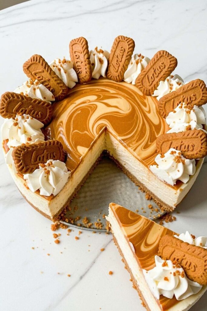 - The Classic Look: Top each slice with a dollop of whipped cream and a whole Biscoff cookie pressed into the side.